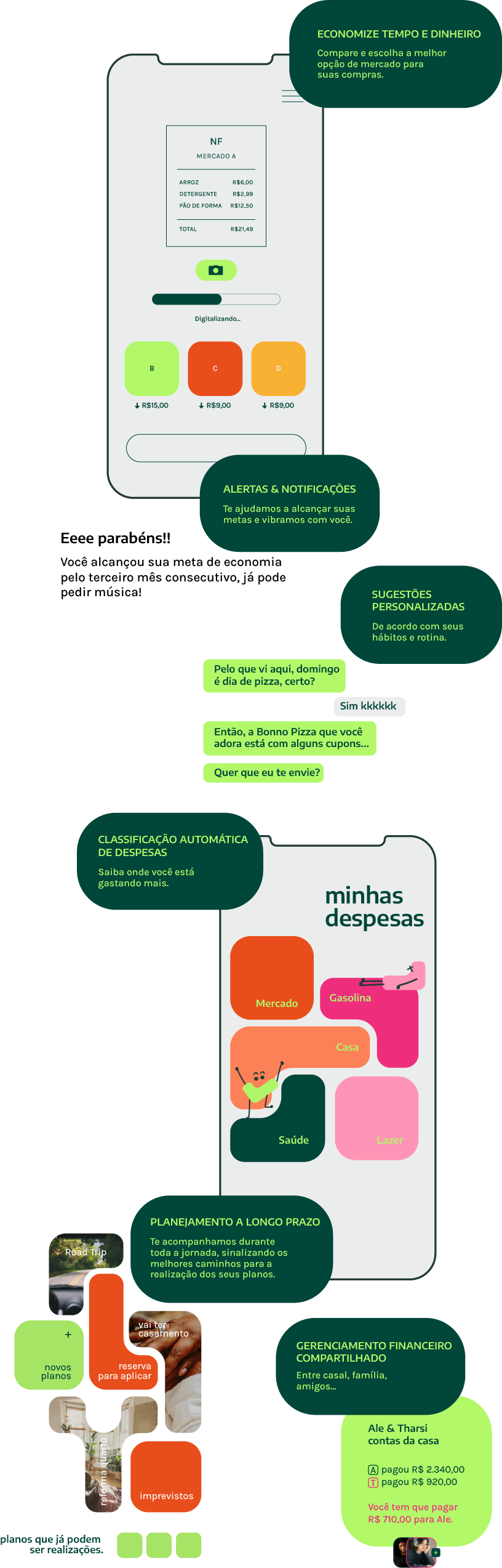 Integração com todos os cartões para que você centralize todas suas informações financeiras.
